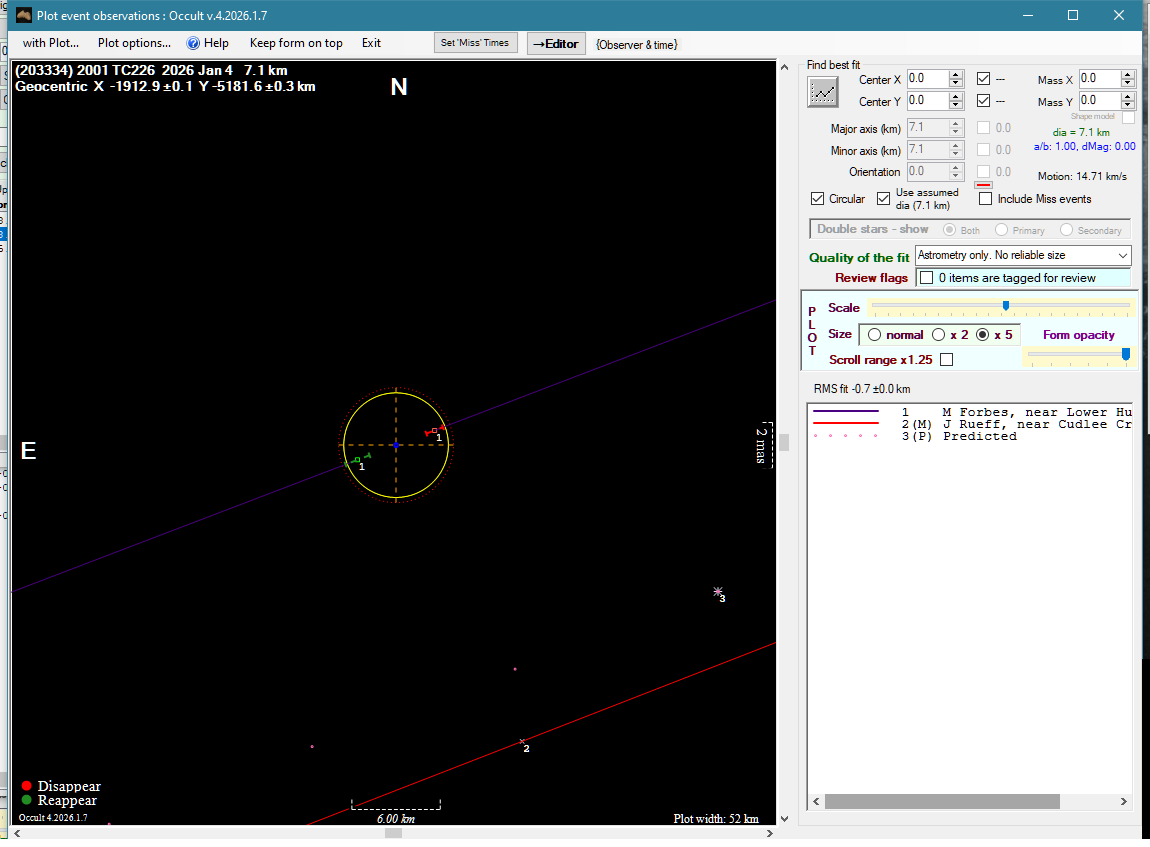 | 14-Jan-26 15:16 | (427048) 2014 TC158 | UCAC4 506-009403 | D. Hooper | Como, WA, AU | Miss | ||