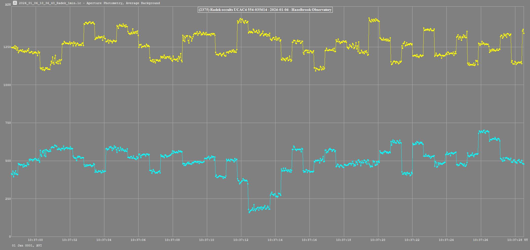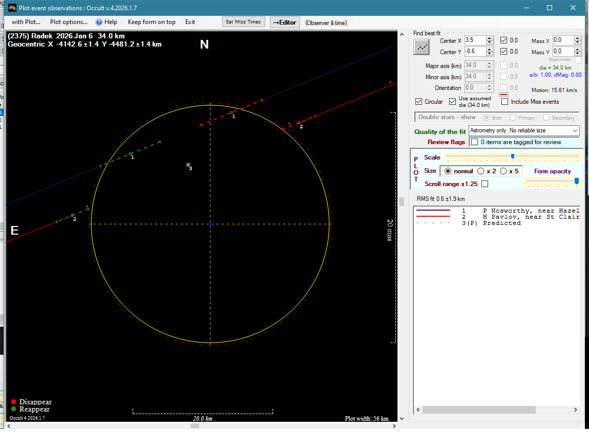 | 6-Jan-26 10:37 | (2375) Radek | UCAC4 554-035614 | H. Pavlov P. Nosworthy | St Clair, NSW, AU Hazelbrook, NSW, AU | Positive Positive | ||