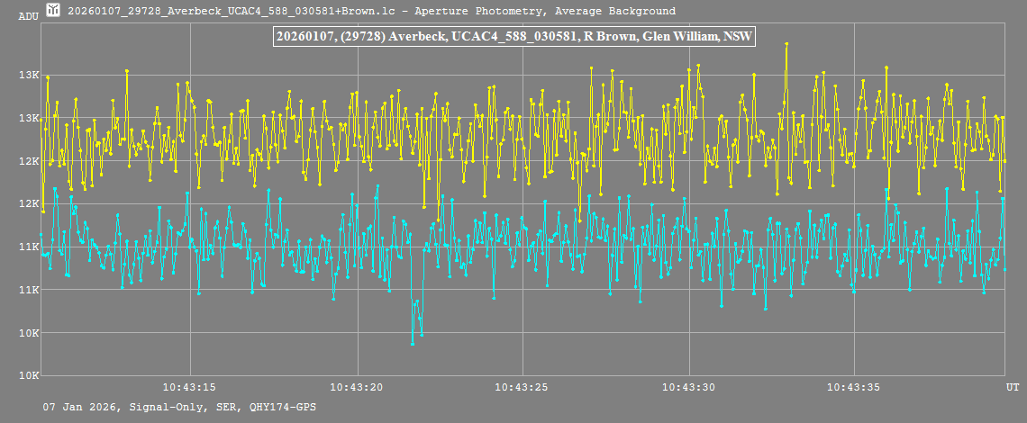 | 7-Jan-26 10:43 | (29728) Averbeck | UCAC4 588-030581 | R. Brown | Glen William, NSW, AU | Positive | ||