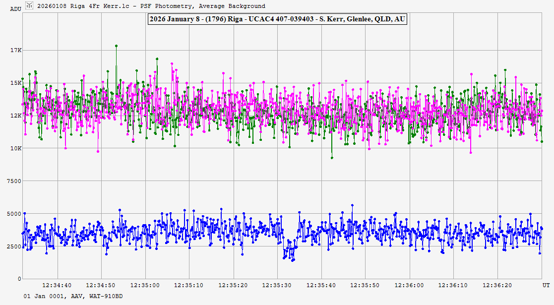 | 8-Jan-26 12:36 | (1796) Riga | UCAC4 407-039403 | S. Kerr | Glenlee, QLD, AU | Positive | ||