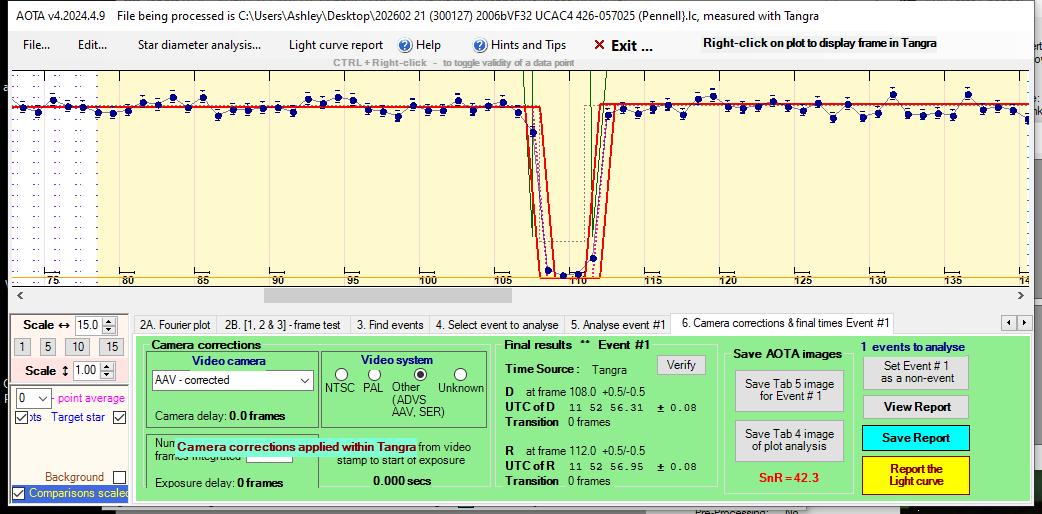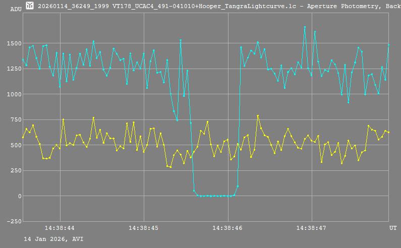 | 14-Jan-26 14:39 | (36249) 1999 VT178 | UCAC4 491-041010 | D. Hooper | Como, WA, AU | Positive | ||