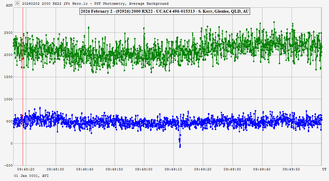 | 2-Feb-26 9:49 | (92926) 2000 RX22 | UCAC4 496-015313 | S. Kerr | Glenlee, QLD, AU | Positive | ||