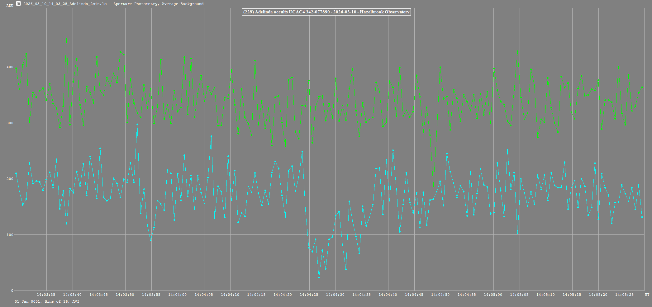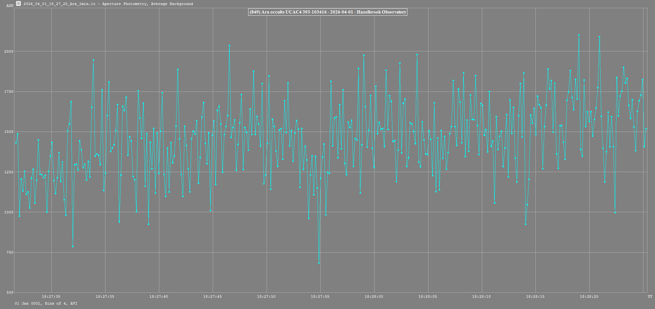 | 1-Apr-26 18:28 | (846) Ara | UCAC4 393-103416 | P. Nosworthy | Hazelbrook, NSW, AU | Positive | ||