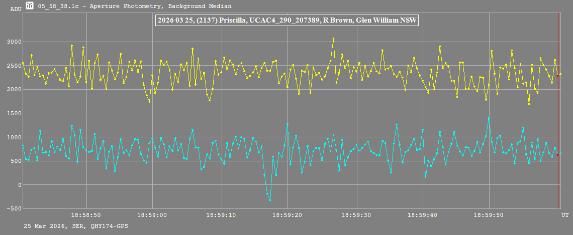 | 25-Mar-26 18:59 | (2137) Priscilla | UCAC4 290-207389 | R. Brown | Glen William, NSW, AU | Positive | ||