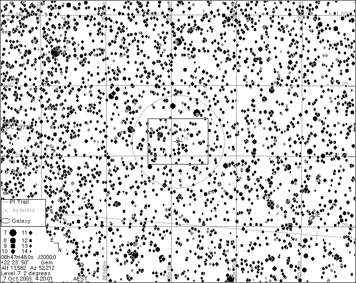 Chart is 2 degrees. Aperture ring is 30arcminutes