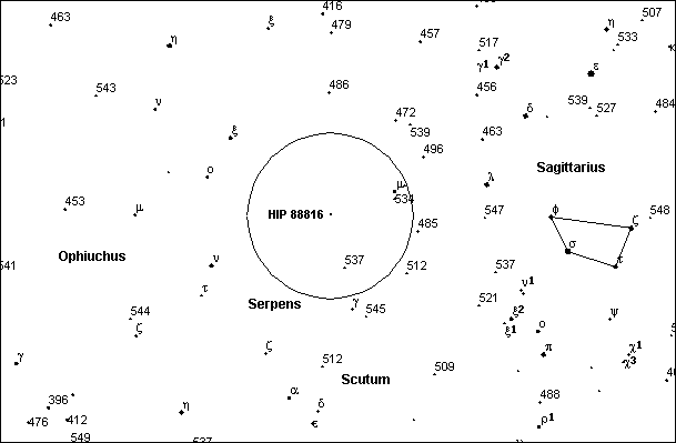 On 2003 Jul 19 UT, the 80 km diameter asteroid (976) Benjamina will occult a 5.7 mag star in the constellation Sagittarius for observers along a path across Argentina, Chile, New Zealand and SE Australia.