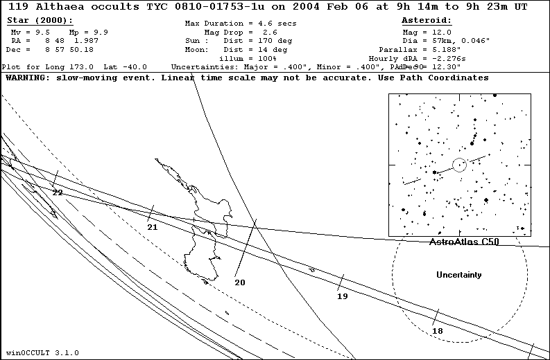 On 2004 Feb 06 UT, the 57 km diameter asteroid (119) Althaea will occult a 9.5 mag star in the constellation Cancer for observers along a path across New Zealand.