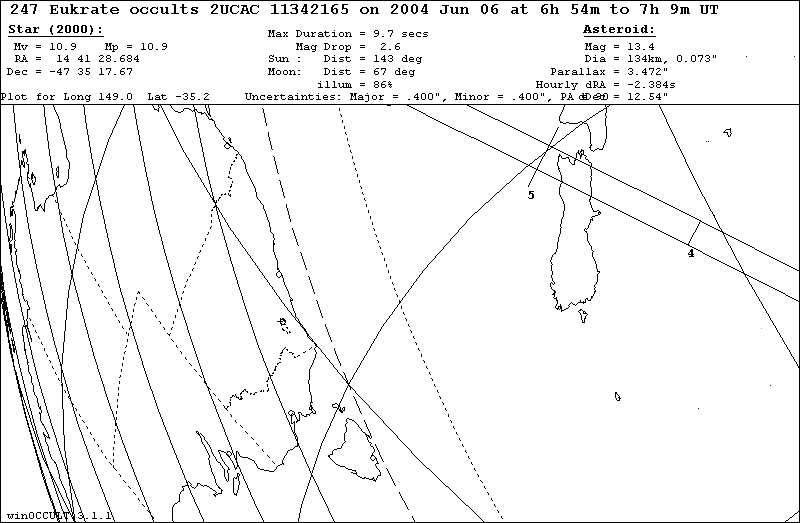 On 2004 Jun 06 UT, the 134 km diameter asteroid (247) Eukrate will occult a 10.9 mag star in the constellation Lupus for observers along a path across New Zealand.