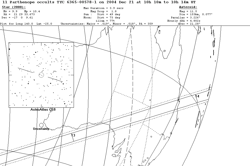 On 2004 Dec 21 UT, the 153 km diameter asteroid (11) Parthenope will occult a 9.9 mag star in the constellation Capricornus for observers along a path across E Australia.